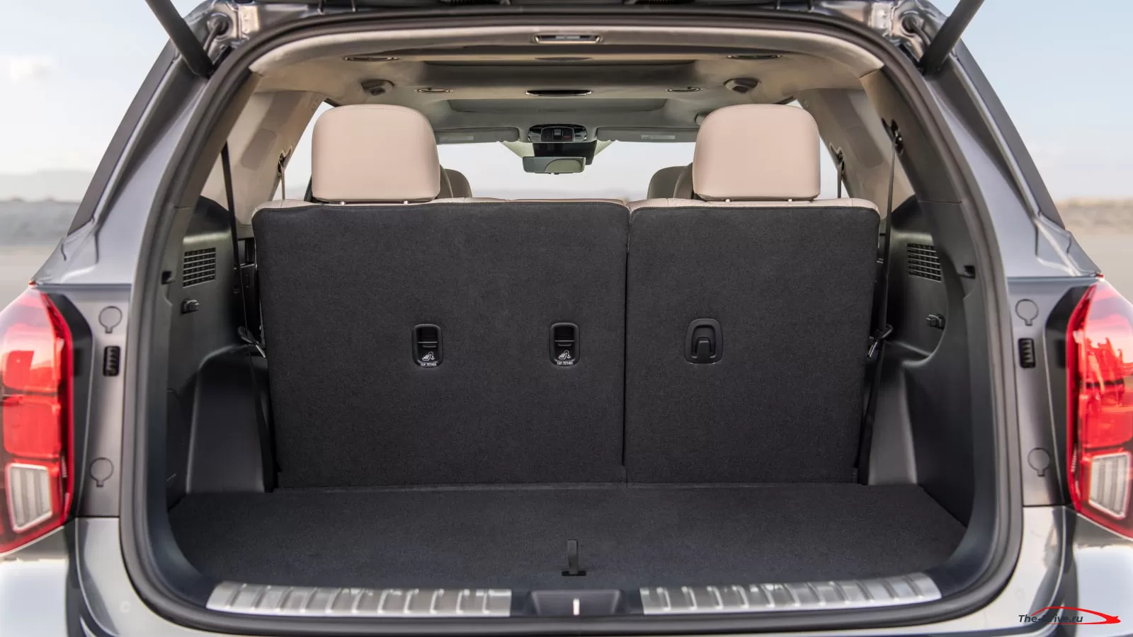 Грузовой объем также лучше, чем у большинства, — 18 кубических футов за поднятым третьим рядом, что достаточно для размещения четырех больших чемоданов. Больше вместил только более компактный Telluride Palisade, а также Volkswagen Atlas. Объем багажника составляет 45,8 кубических футов, когда третий ряд опущен, и 86,4, когда оба ряда опущены — оба показателя довольно средние для сегмента, что просто прекрасно. Второй ряд имеет стандартную функцию складывания с электроприводом, в то время как третий ряд с электроприводом является опциональным для SEL и стандартным для Limited.