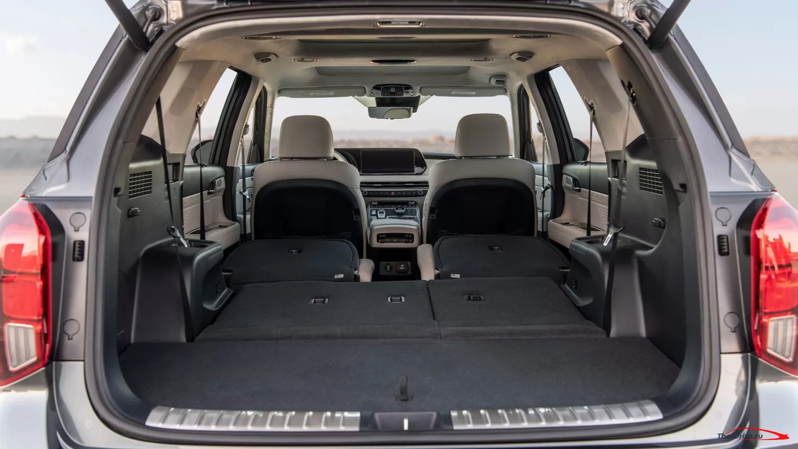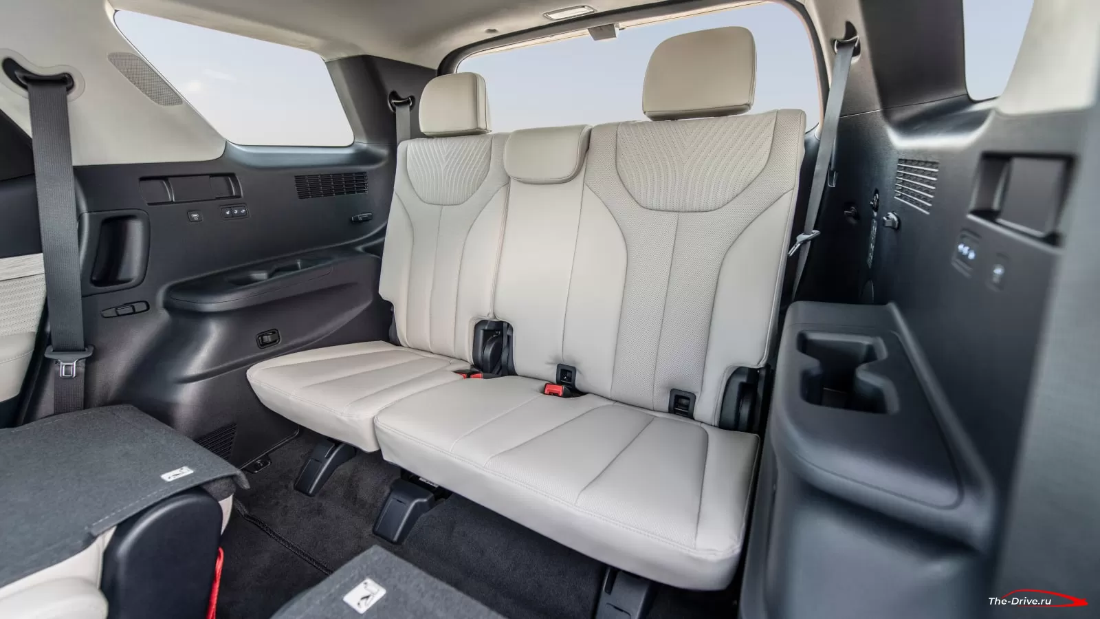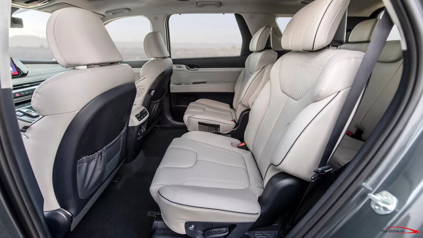 Palisade — один из самых больших трехрядных кроссоверов. Немногие из них имеют такую длину и ширину, а пространство для ног и головы в третьем ряду — одно из самых больших в сегменте. Даже высокий взрослый человек может разместиться там с комфортом. Кроме того, большие окна задней четверти и широкие, вертикальные боковины автомобиля означают, что тот, кто сидит сзади, не будет испытывать чувства клаустрофобии. Доступ к третьему ряду осуществляется с помощью кнопок с электроприводом одним нажатием, а также уникальных ручек, встроенных в С-образные стойки, но в результате зазор между этой стойкой и сдвинутым вперед сиденьем оказывается всего лишь средним. Второй ряд предлагает стандартное раздельное сиденье 60/40, обеспечивающее общую вместимость восемь человек, или капитанские кресла, уменьшающие вместимость до семи. Пространство и комфорт в любом случае превосходны, но этого и следовало ожидать в данном сегменте.