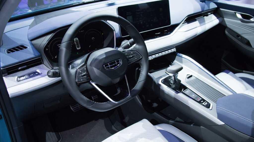 Стильный салон Geely Xingrui выглядит безупречно. Сенсорное управление с помощью крупного экрана 12,3” гармонично дополняют блоки механических переключателей. В базовую комплектацию добавили: