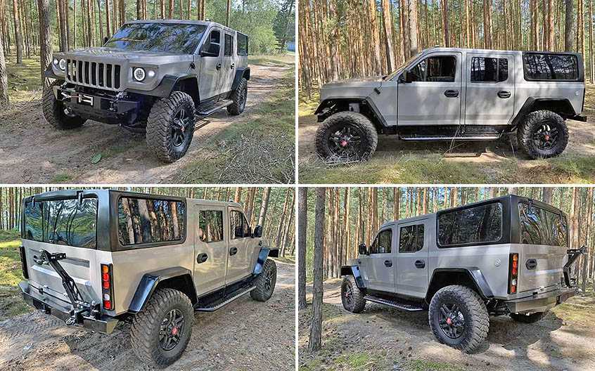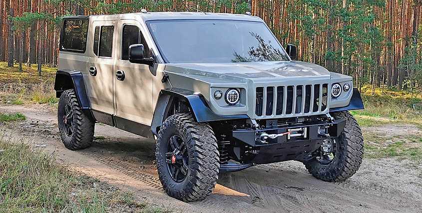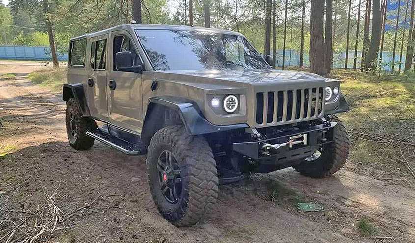Внешне от бронированной Стрелы новинка отличается очень сильно. Её дизайн куда ближе к американскому Jeep Wrangler. Добавляют сходство характерная радиаторная решетка, а также решение фар, расположенных над крыльями. В профиль также заметно сходство между двумя моделями.