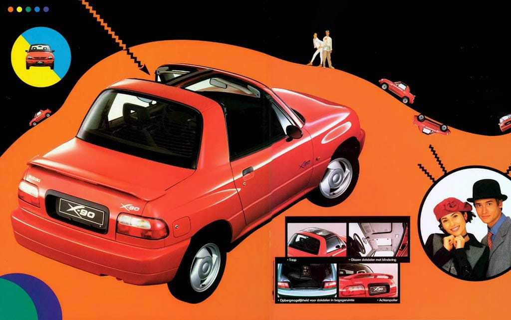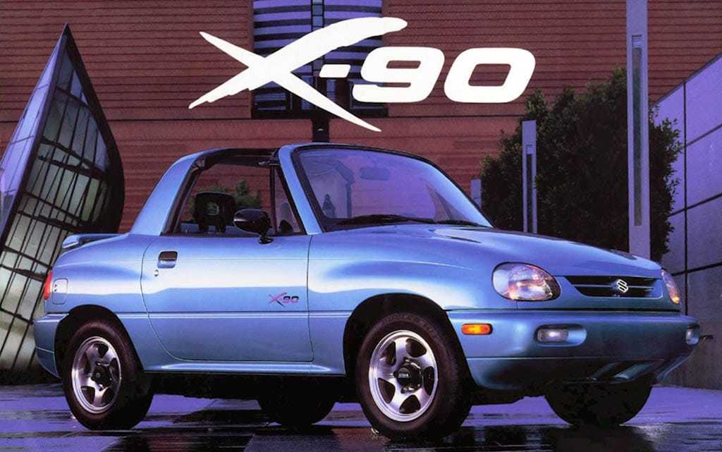 Suzuki X-90 — был своего рода экспериментом в ходе которого фирма Сузуки пыталась прощупать новые рыночные ниши в стремительно растущем классе компактных внедорожников. Автомобиль появился в 1995 году и фактически представлял собой перелицованный, короткобазный вариант популярного Suzuki Sidekick. Другими словами в активе автомобиля имелись: неплохой 16-клапанный двигатель мощностью 95 л.с., полноприводная трансмиссия с жестко подключаемым передним приводом и рамное шасси с независимой передней подвеской.