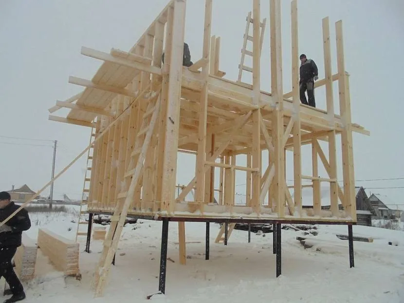 Один из плюсов каркасного дома — строительные работы можно проводить и в зимнее время годаИсточник assz.ru