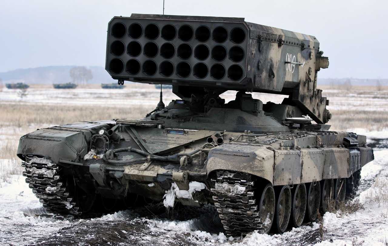 ТОС-1 комплектуются термобарическими боеприпасами с поражающими факторами — высокой температурой и давлением.
