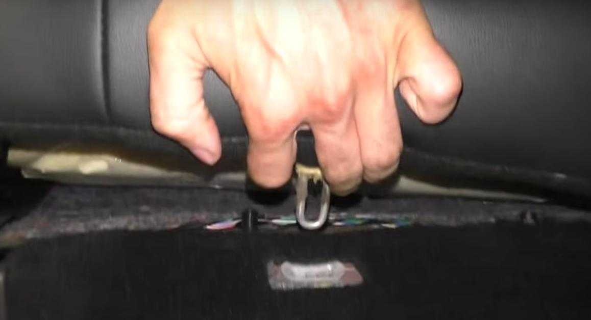 Первое к чему нужно приступить, при снятии заднего дивана на весте — засунуть руки под диван, и нащупать фиксаторы под ним.
