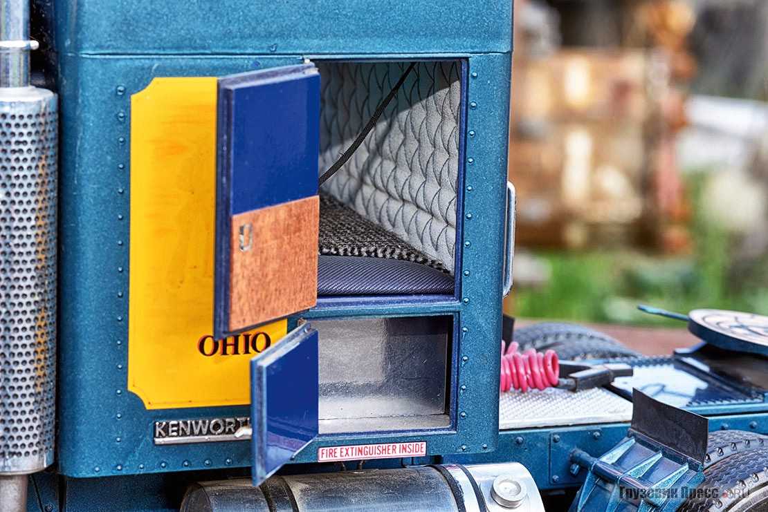 10.Спальное место, одно из главных достоинств американских траков. Почти всегда, частник, покупая себе грузовик, приобретает, по сути — второй дом. На фото, представлена кабина Кенворта изнутри. Часть кухонного гарнитура, а на заднем плане, панель управления климатической установкой.