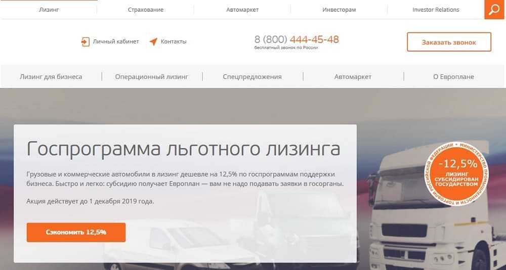 Компания «Европлан» успешно заключает лизинговые договоры на автомобильном рынке более 18 лет. Сотрудничество с крупнейшими организациями, поставки от надежных продавцов и выгодные условия кредитования составляют основу успеха сервиса. Поддержка работы с личным кабинетом позволяет клиенту контролировать исполнение всех соглашений, а также получать дополнительные услуги.