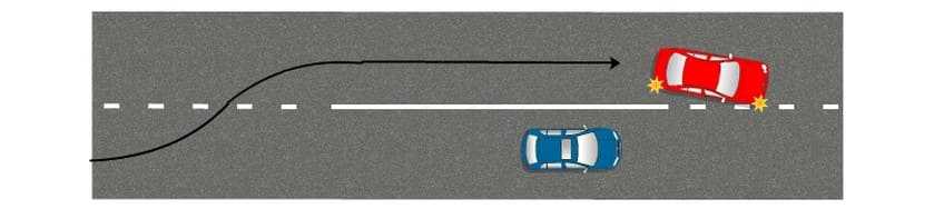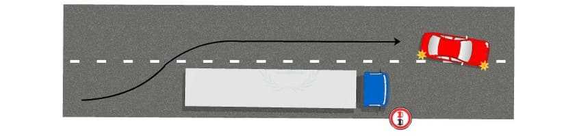 Увы, но и здесь Правила неумолимы. Так делать нельзя. Дело в том, что манёвр обгона завершается только при возврате в свою полосу. На схеме выше этого не произошло до знака. Это значит, что вы оказались на встречной полосе в нарушение ПДД, а это уже состав для привлечения вас к наказанию. И именно об ответственности за это мы и поговорим ниже, а затем приведём актуальную информацию, как избежать лишения прав за запрещённый обгон, завершённый по сплошной линии.