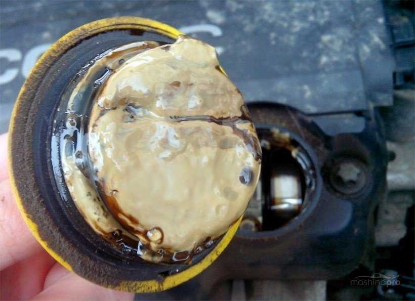 картер двигателя, на крышке образуется налет белого цвета.