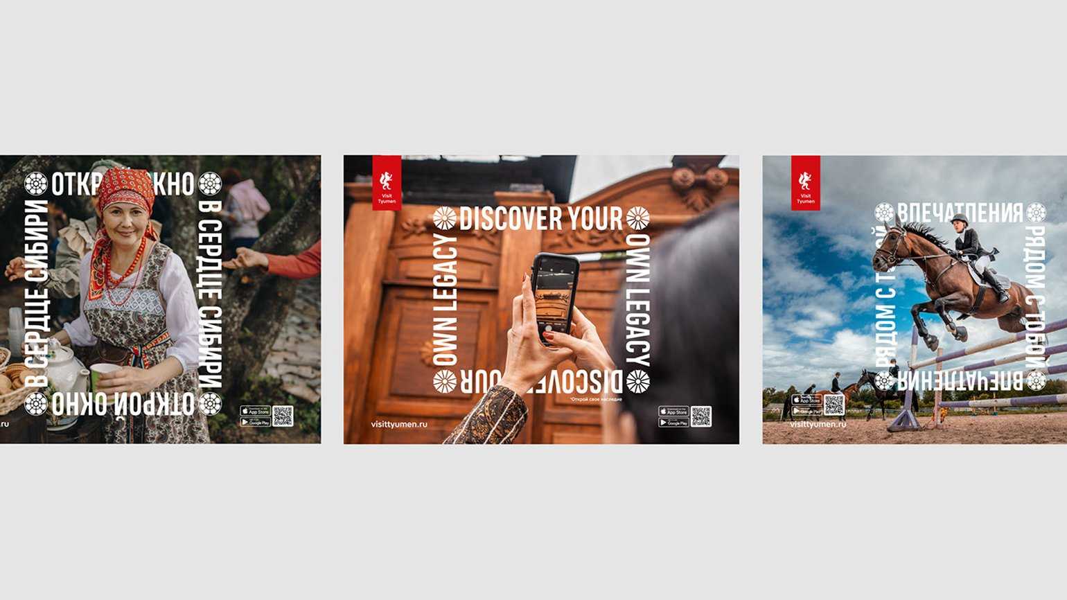 «Лайтшоп» разработал туристический бренд Тюменской области. Его цель ― рассказать о регионе так, чтобы туристы захотели туда приехать. Основой фирменного стиля стал резной наличник ― символ деревянной архитектуры Тюмени. Главный слоган, который предложили дизайнеры, ― «Открой окно в сердце Сибири».
