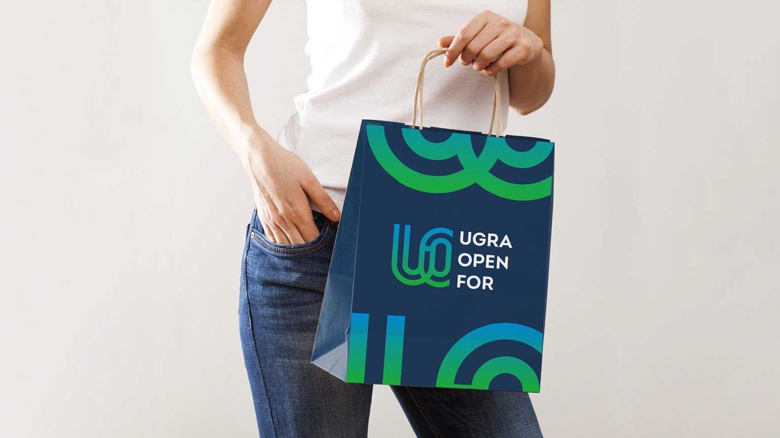 Логотип бренда Югры состоит из двух частей ― знака и слогана/названия бренда: «Ugra Open For» или «Югра открыта для»