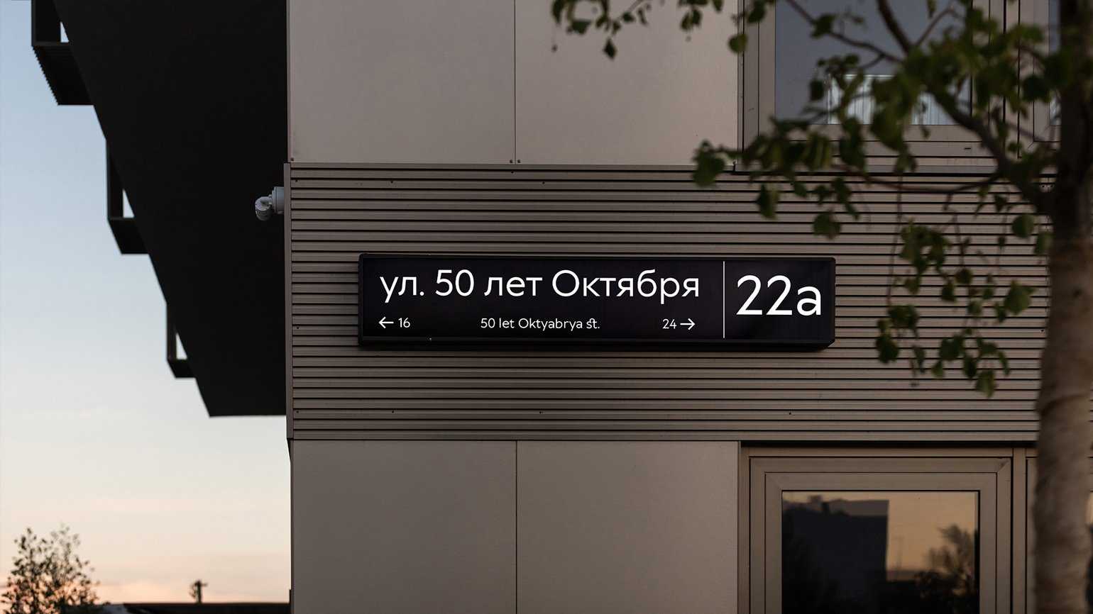Особенность навигации — исторический градиент: на пути от центра города к современным кварталам стиль будет меняться. На металлических табличках в центре планируют использовать шрифт Stronte — современную антикву с европейскими и русскими мотивами. Удаляясь от центра, люди будут видеть таблички, на которых Stronte будет сочетаться с чётким, строгим гротеском Wellington.
