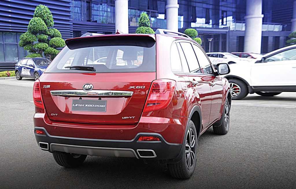 Фейслифтовый Лифан Х60 получил изменения не только передней части «лица», но сама корма и вид сзади так, же претерпели незначительные изменения. Бампер получил более строгие, угловатые формы. Новые задние фонари стали элегантнее и скорее ярче. В нижней части бампера (чёрная полоса) по обеим сторонам появились хромированные имитаторы (фальшпатрубки) разделённых выхлопных труб. Настоящие выходят по старинке под кузовом. Ещё необходимо отметить удачную компоновку спойлера (защитной накладки) над задним стеклом.