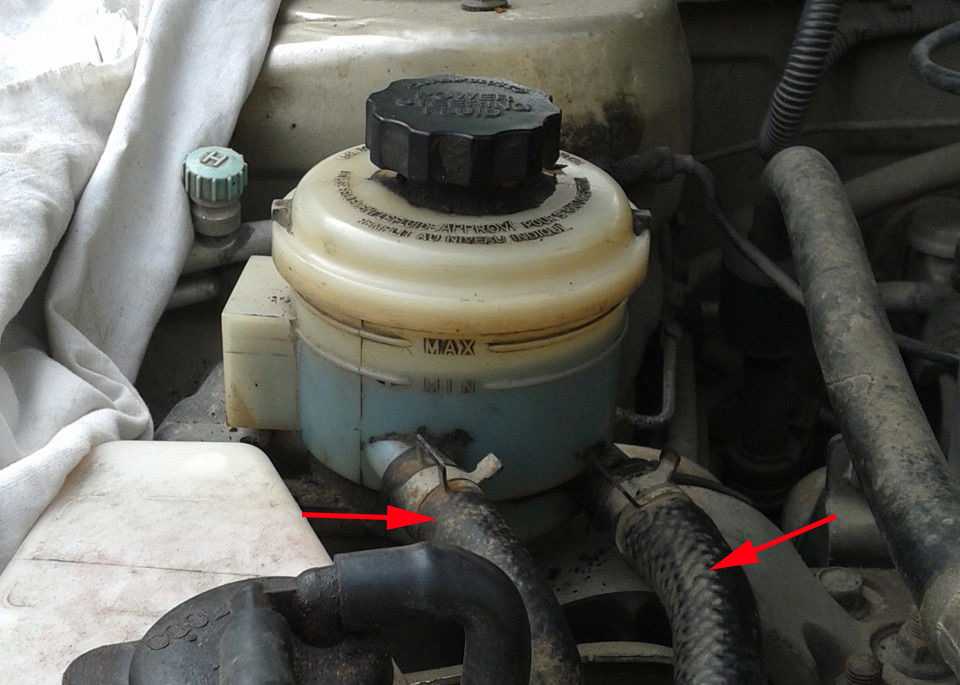 - Заведите машину. Вам понадобится помощь приятеля. Пусть ваш друг поворачивает руль влево-вправо. В этот момент вы должны посмотреть, есть ли пузырьки на шлангах.