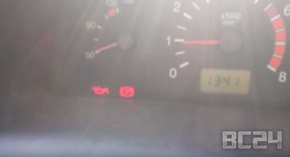 Пробуем заводить мотор. Сразу загорается масляная лампочка.