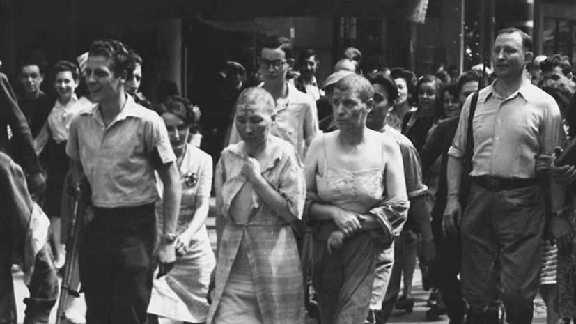 - Обвиняемые в коллаборационизме женщины на улицах Парижа