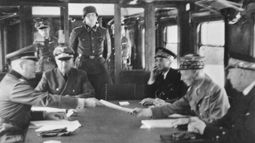 Однако 22 июня 1940 года Франция официально капитулировала. Чтобы унизить французов, германское командование заставило их подписать соответствующий акт в Компьенском лесу — в том самом вагоне, в котором в 1918 году Германия подписала документы о капитуляции перед Антантой. 24 июня Франция подписала перемирие с Италией.