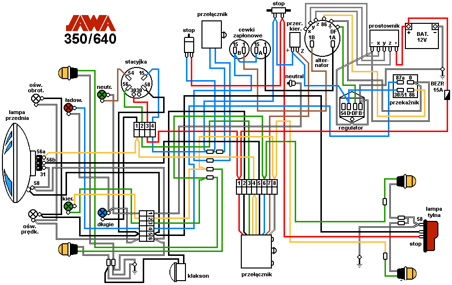 Оригинальная цветная схема электрооборудования Ява модели 634