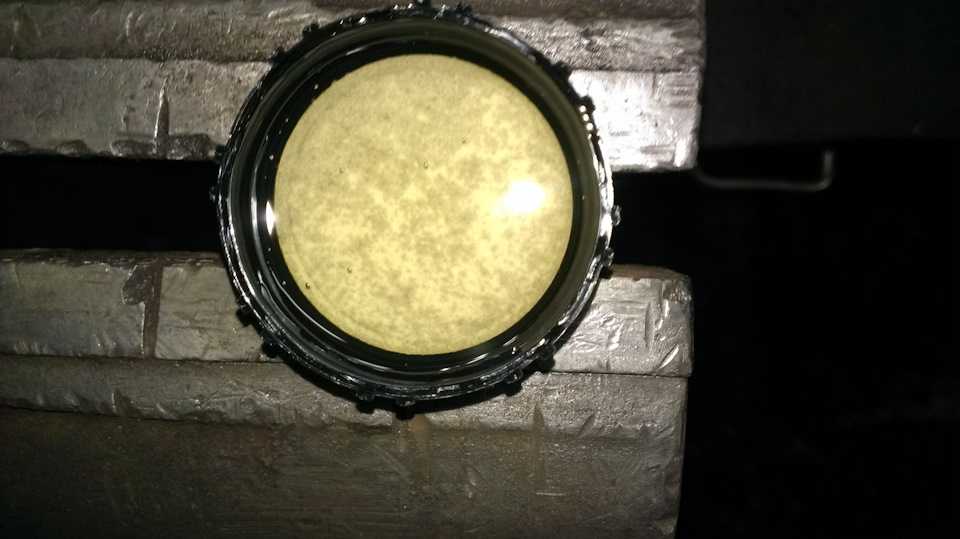 Для интереса налил масло в пробку и попробовал растереть его пальцах. Само масло очень текучее, прозрачное и на ощупь слегка терпкое на пальцах. Скажем так — совсем не такое как классическое 15W-40 — жирный и плотный гудрон пивного цвета :))