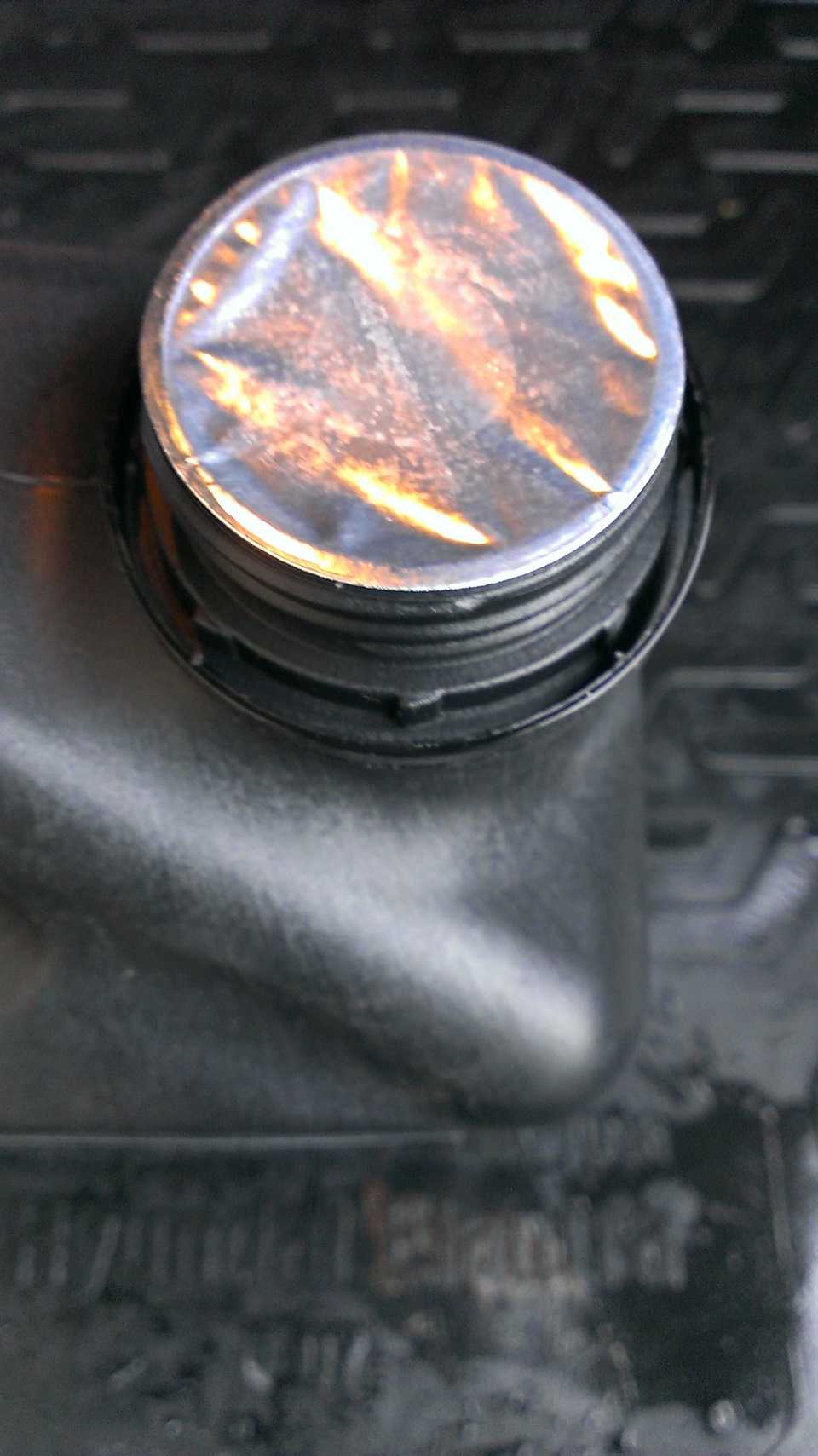Перед заливкой масла встала проблема — как из 4л канистры влить ровно 3,3 л масла в двигатель без перелива. Решение было молниеносным и лёгким. Поставив канистру на ровную поверхность и взяв в руки линейку, маркер, я отметил маркером верхний уровень масла, т.е. визуально на шкале получили верхний край масла в канистре (4л). А дальше простая математика, если 1 л масла по уровню в канистре составляет n-ое количество см (сейчас не вспомню сколько было), то 0,7 л масла (остаток в канистре) будут составлять пропорциональное кол-во см, т.е. простая пропорция. Высчитав и поставив отметку остатка масла на канистре снизу — залили свежее масло в двигатель. Пока парнишка возился с защитой и немного обождав, проревели уровень масла. Вытянули щуп и вуаля — масла в тютельку по верхнюю точку на щупе.Запустил двигатель. Лампочка давления масла погасла практически сразу — значит всё ок. Утром на холодную проверил ещё раз уровень — не перелили. :))Как раз на сл. день пошёл сильный снег, резкое похолодание — вообщим маслецо поменять успел во время