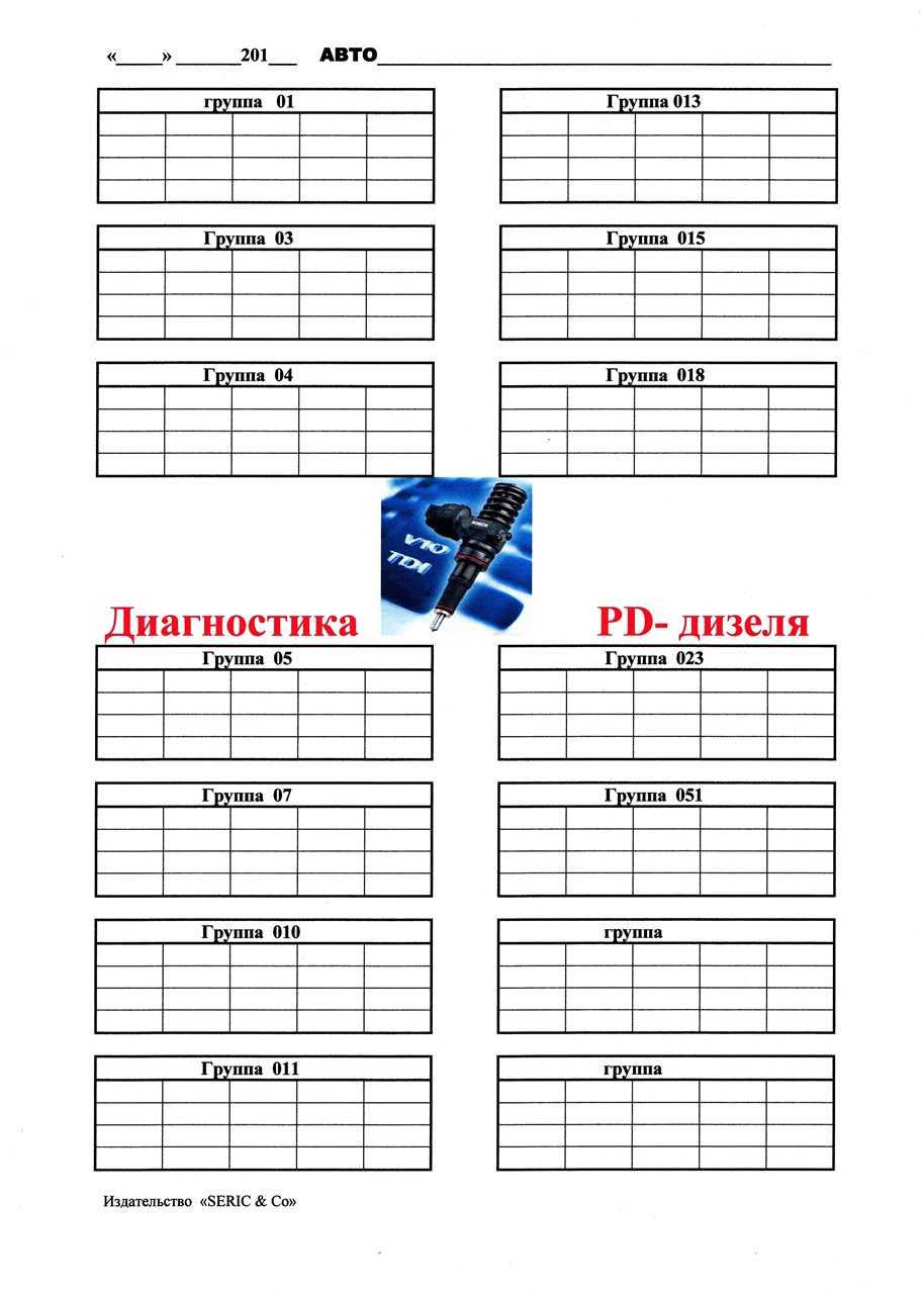 Руководство Диагностика PD-дизеля (насос-форсунка) — таблица первичной диагностики, форма для заполнения