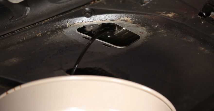 - Откручиваем пробку на отверстии для слива и даём полностью стечь рабочей жидкости в подставленную ёмкость. Это может занять довольно длительное время.