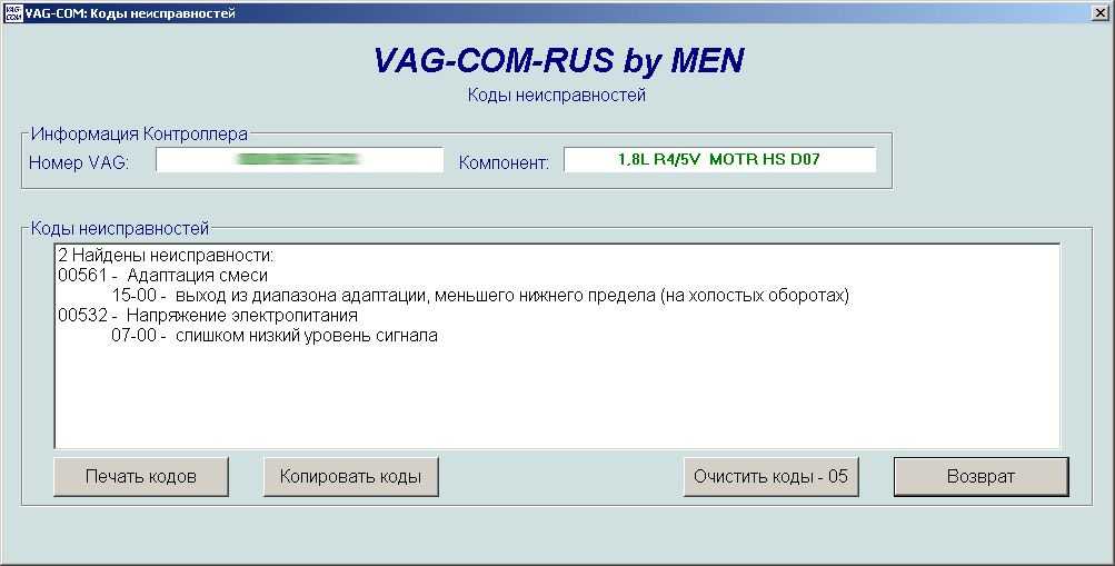 Программа VAG-COM. Коды неисправностей