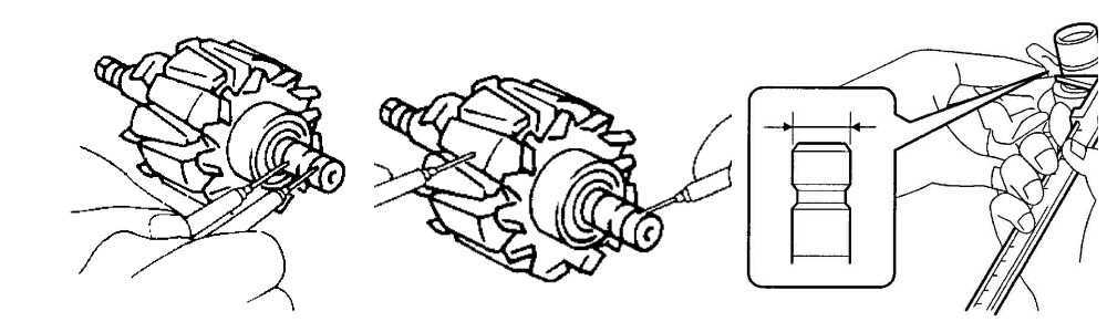 - Замерить диаметр контактных колец. Они также стираются в процессе эксплуатации и, если намеренное значение меньше 14 мм, то ротор подлежит замене.