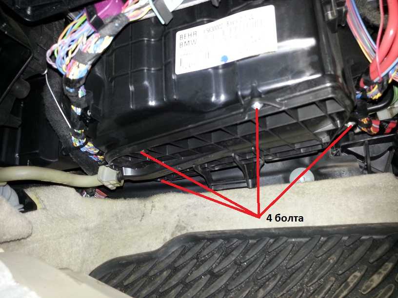 Итак, сняв панель, мы видим перед собой кучу проводов и черный короб, который и содержит фильтры салона. Чтобы добраться к фильтрам, вам следует снять нижнюю крышку этого короба, которая держится на 4 болтах. Увидеть эти болты, не выгнувшись как турецкая сабля, почти невозможно, поэтому показываем их расположение на фотографиях. Отвертка та же. Приступаем!