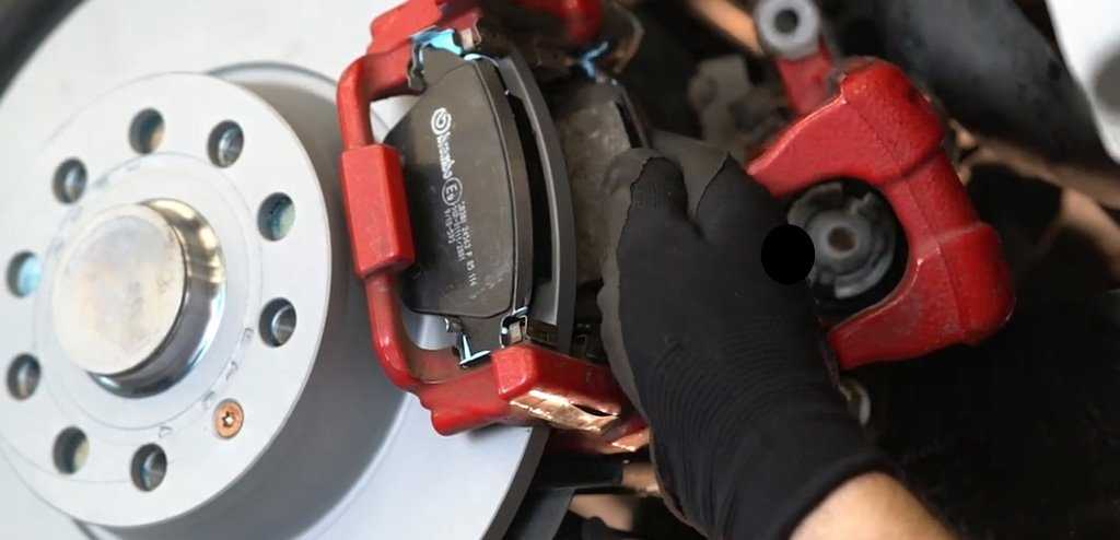 Устанавливаем колодки в скобу. Не забудьте смазать противоскрипной пастой “язычки” колодок.