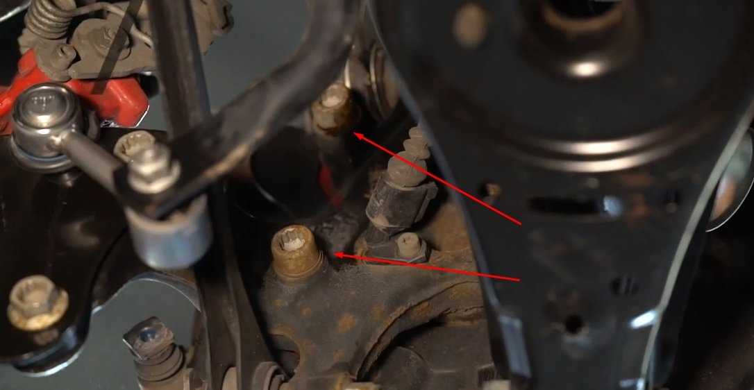 Силовым воротком и головкой Spline M12 откручиваем крепящие болты скобы.