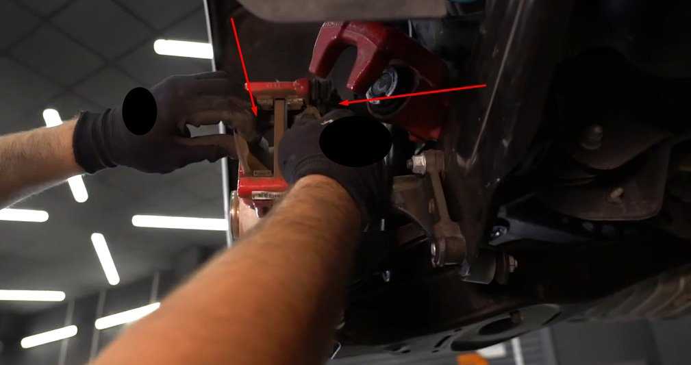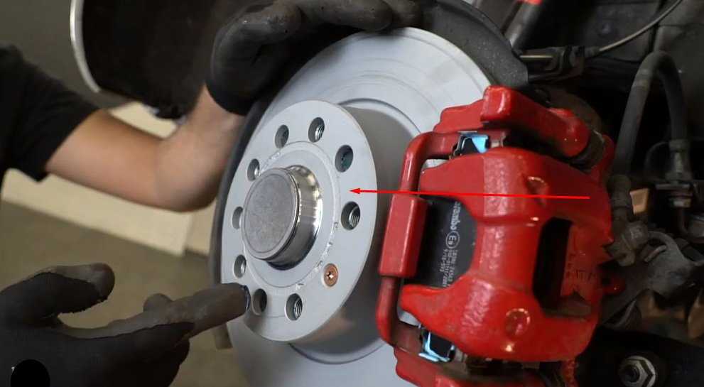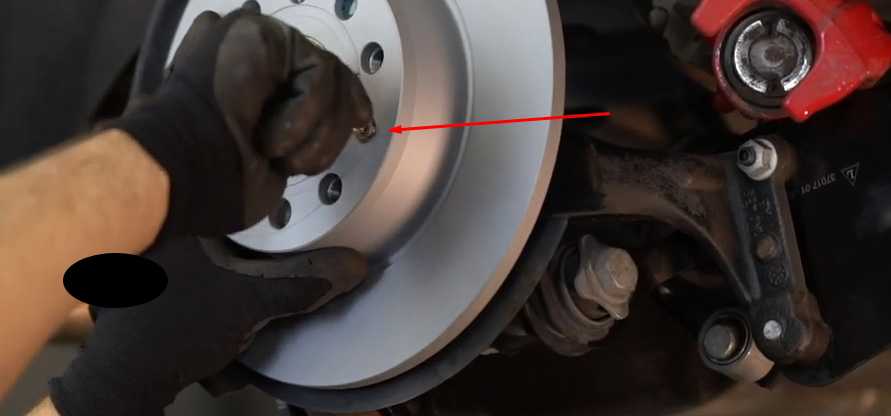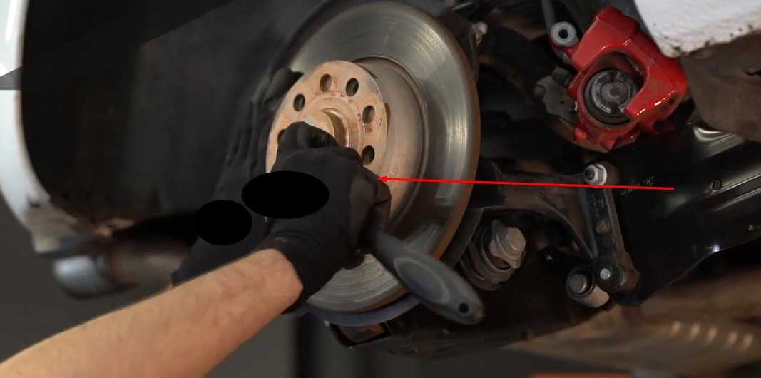 После откручивания болтов демонтируем скобу и отворачиваем стопорный винт тормозного диска под Torx T30.